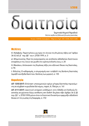 Χαρούλα Απαλαγάκη, Καθηγήτρια Νοµικής Σχολής ΑΠΘ, †Ευάγγελος Βασιλακάκης, Δηµήτρης Κράνης, Αντιπρόεδρος ΑΠ ε.τ., Καλλιόπη Μακρίδου, Καθηγήτρια Νοµικής Σχολής ΑΠΘ, Δηµήτρης Τζουγανάτος, Καθηγητής Νοµικής Σχολής ΕΚΠΑ, Ελένη Τροβά, Επίκουρη Καθηγήτρια Διεθνούς Πανεπιστημίου της Ελλάδας, Δ.Ν., Δικηγόρος, Εταίρος της Δικηγορικής Εταιρίας Τροβά, Κάρµου & Συνεργάτες, Δηµήτρης Τσικρικάς, Καθηγητής Νοµικής Σχολής ΕΚΠΑ, Ιωάννης Φιλιώτης, Δικηγόρος, Εταίρος της Δικηγορικής Εταιρίας Λαµπαδάριος & Συνεργάτες
