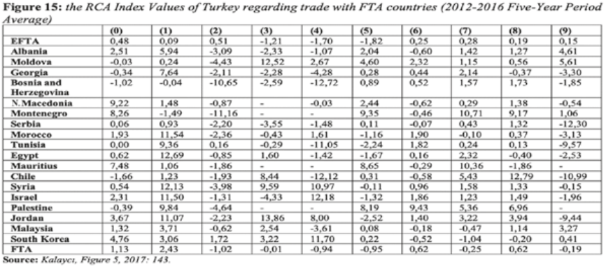 Kalayci, C., (2017) Serbest Ticaret Anlaşmalarının Türkiye’nin Dış Ticaretine Etkileri: Açıklanmış Karşılaştırmalı Üstünlükler Endeksi Uygulaması, International Journal of Economics and Innovation, 3, (2) 2017, 133-147